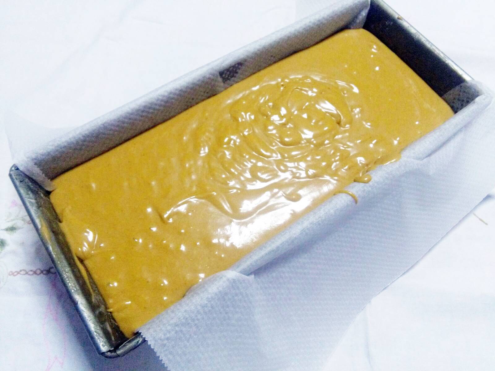 8. Untamos un molde con mantequilla o lo forramos con papel de horno, vertemos la masa en él y horneamos a 180 ºC durante 45 minutos / 1 hora. ¡Y listo!